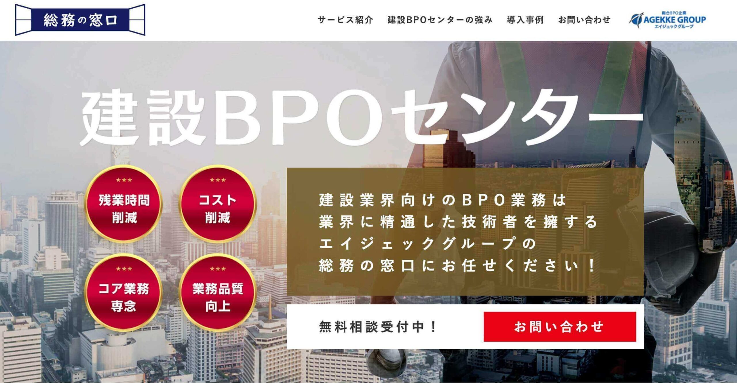 建設BPOセンターは、エイジェックグループが提供する建設業界特化型の業務代行サービスです。