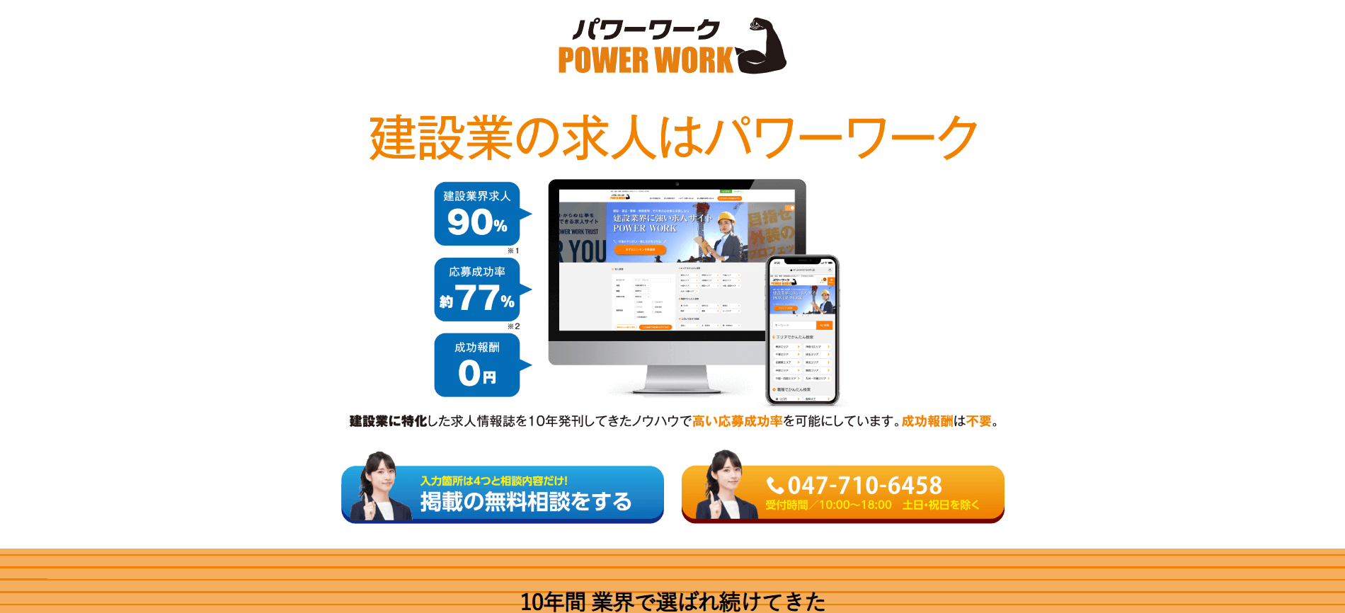 POWER WORK」は、建設・運送・警備・資源循環などの「現場系職種」に特化した求人サイトです。