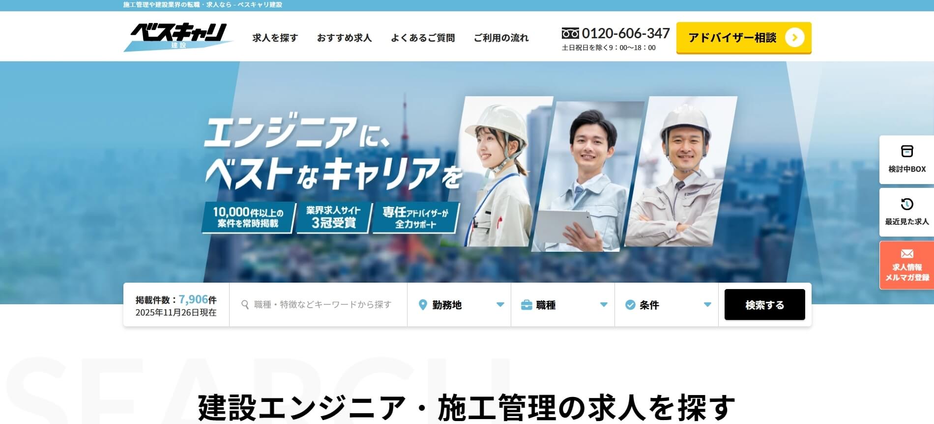 ベスキャリ建設」は、東証プライムに上場しているコプロ・ホールディングスのグループ企業が運営している転職サイトです。