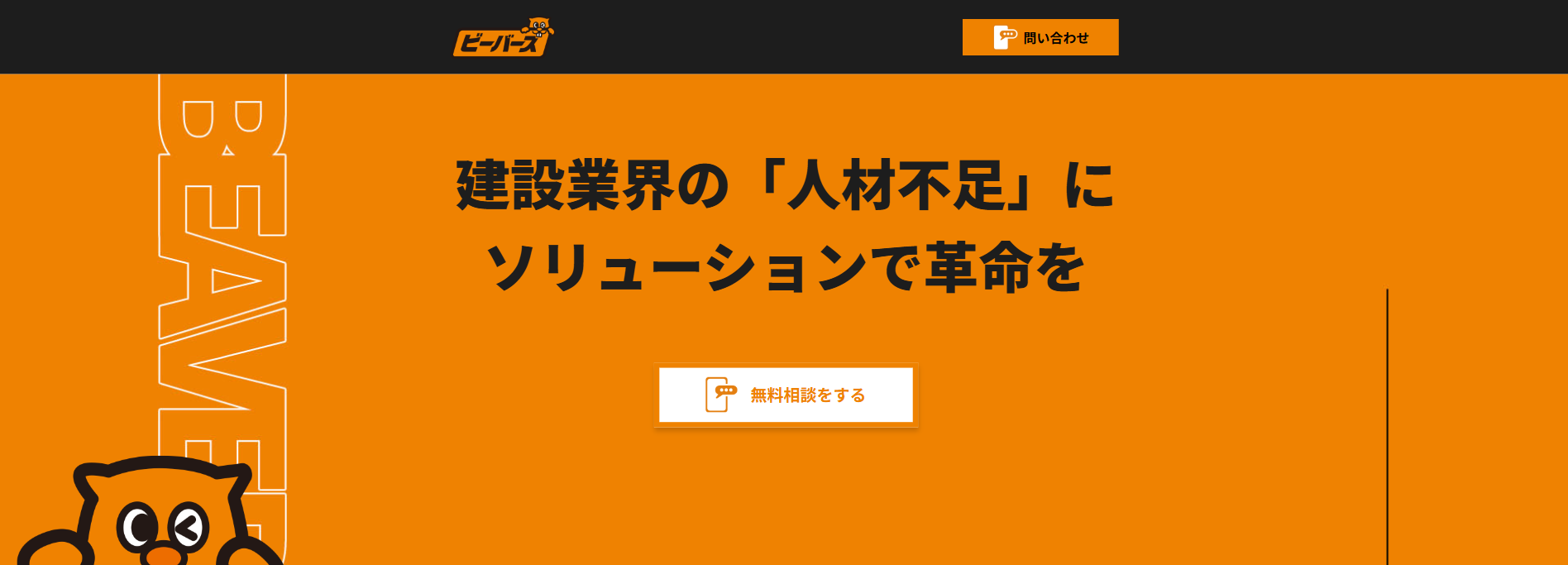ビーバーズ」も建設業に特化した転職支援サイトです。ビーバーズの特徴はワークライフバランスを重視した転職に強く、完全週休2日制の求人を多数掲載しています。