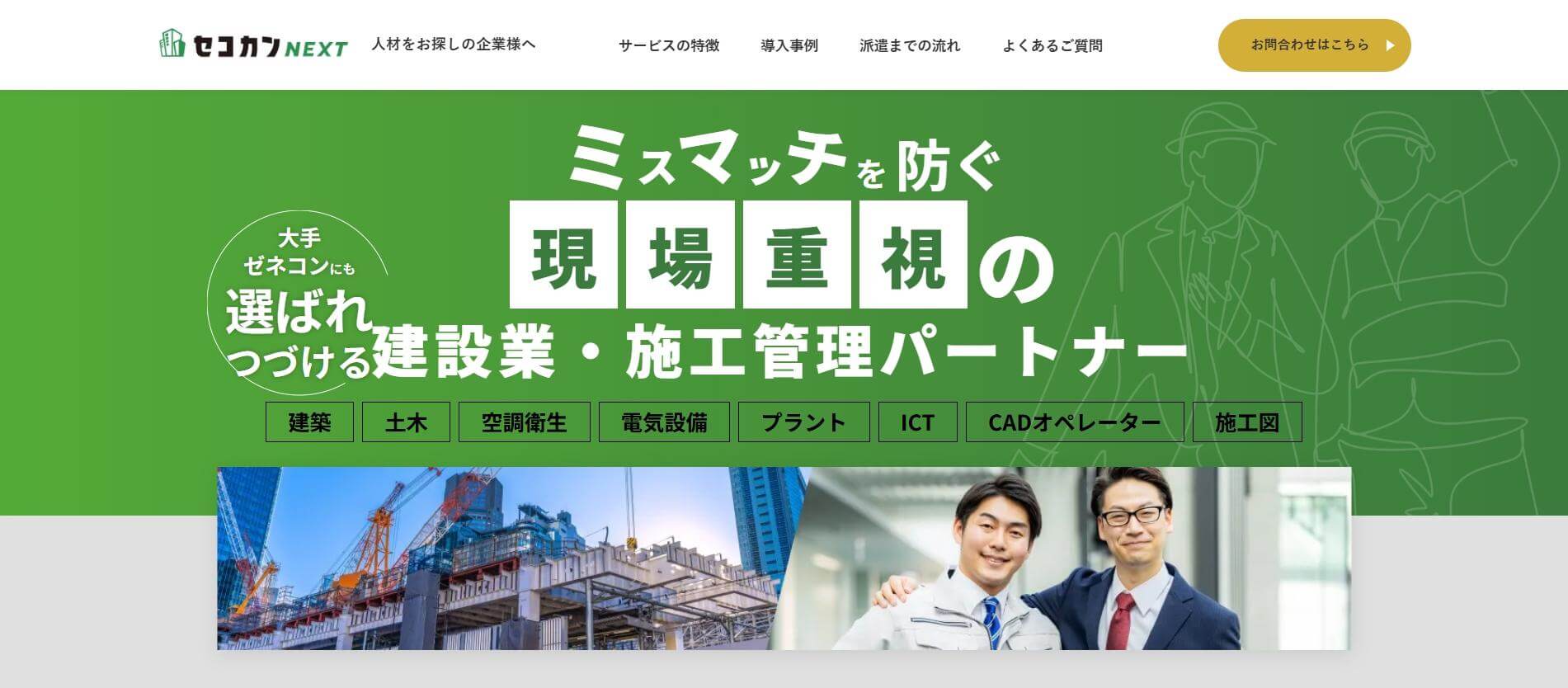 セコカンNEXT」は、建設業の中でも、施工管理職の求人を多く扱っている求人サイトです。経験者だけでなく、未経験者向けの求人も豊富にあるため、企業のニーズに合った人材を見つけられます。