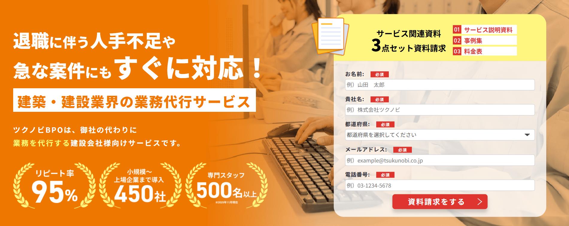 ツクノビBPOは、建設業界に特化した業務代行サービスです。