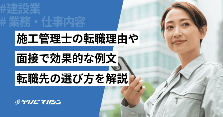 そのため、「今の職場に不満がある」「転職を考えているが、どう伝えればいいのかわからない」「施工管理の経験を活かして別の道に進みたい」など、悩んでいる人も多いのではないでしょうか。
