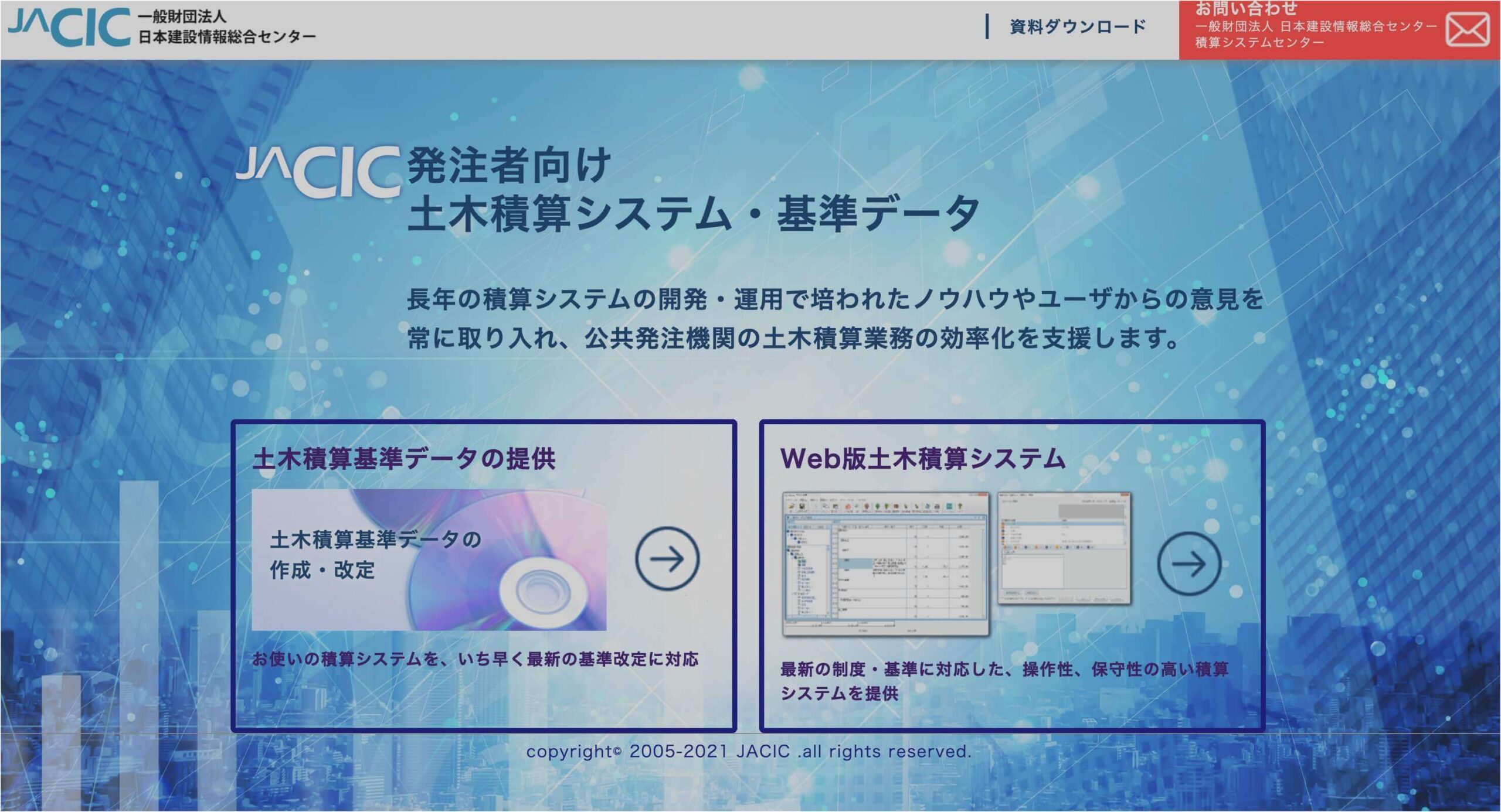 Web版土木積算システムは、JACICが提供する公共発注機関向けの土木積算システムであり、国土交通省の積算制度に適時対応している点が特徴です。