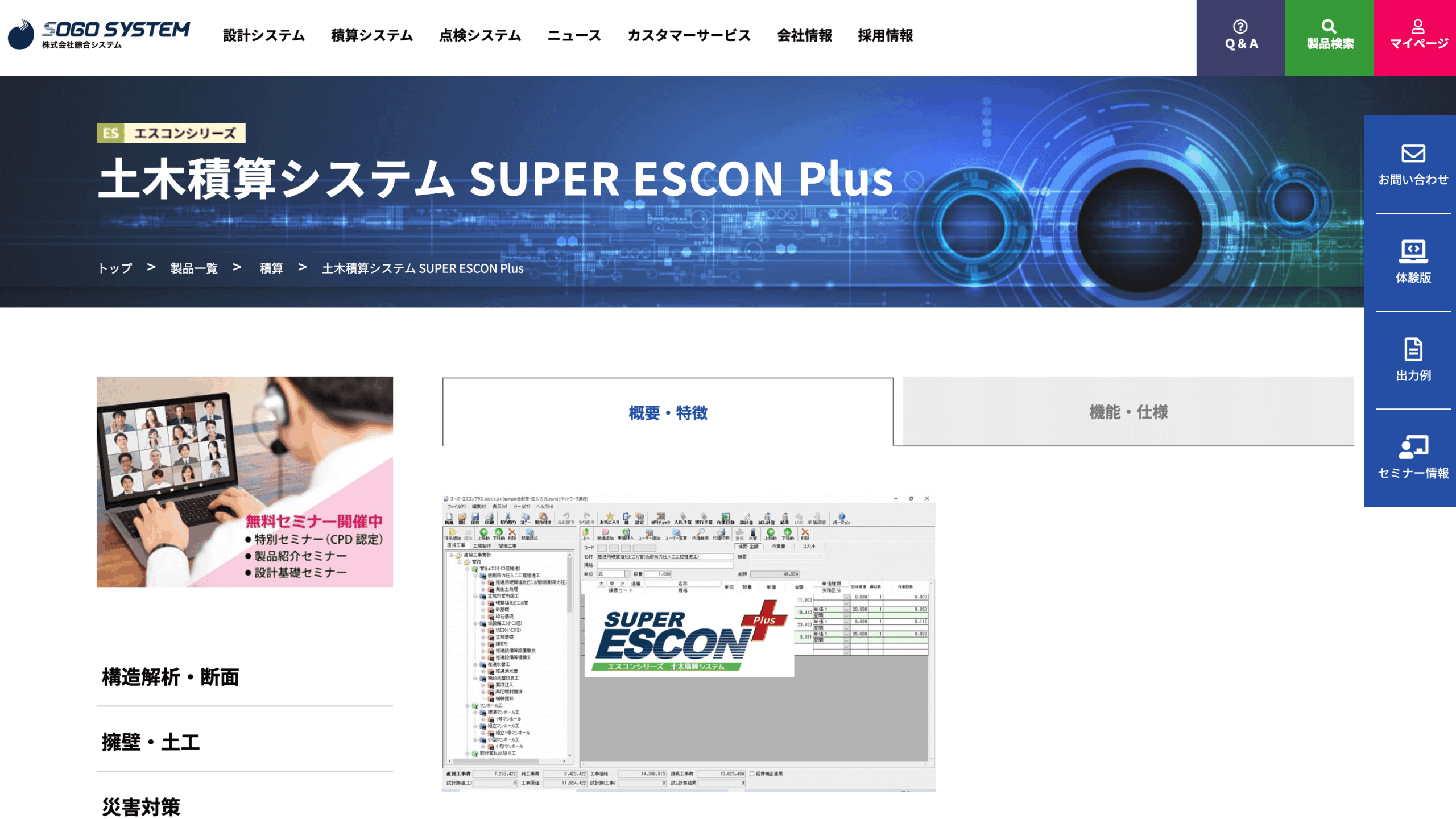 SUPER ESCON Plusは、国土交通省の土木工事積算基準をはじめとする各種積算基準に対応しており、基準に沿った入力画面で正確かつ効率的に作業を進められるソフトです。