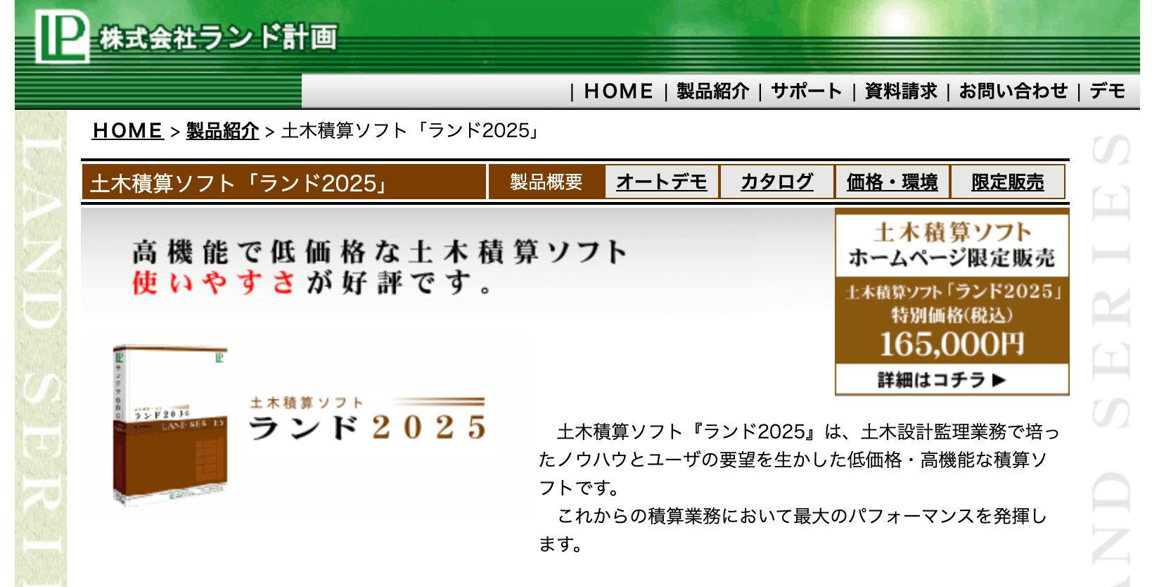 土木積算ソフト「ランド2025」は、土木設計監理業務で培ったノウハウとユーザーの要望を反映した、低価格で高機能なソフトです。