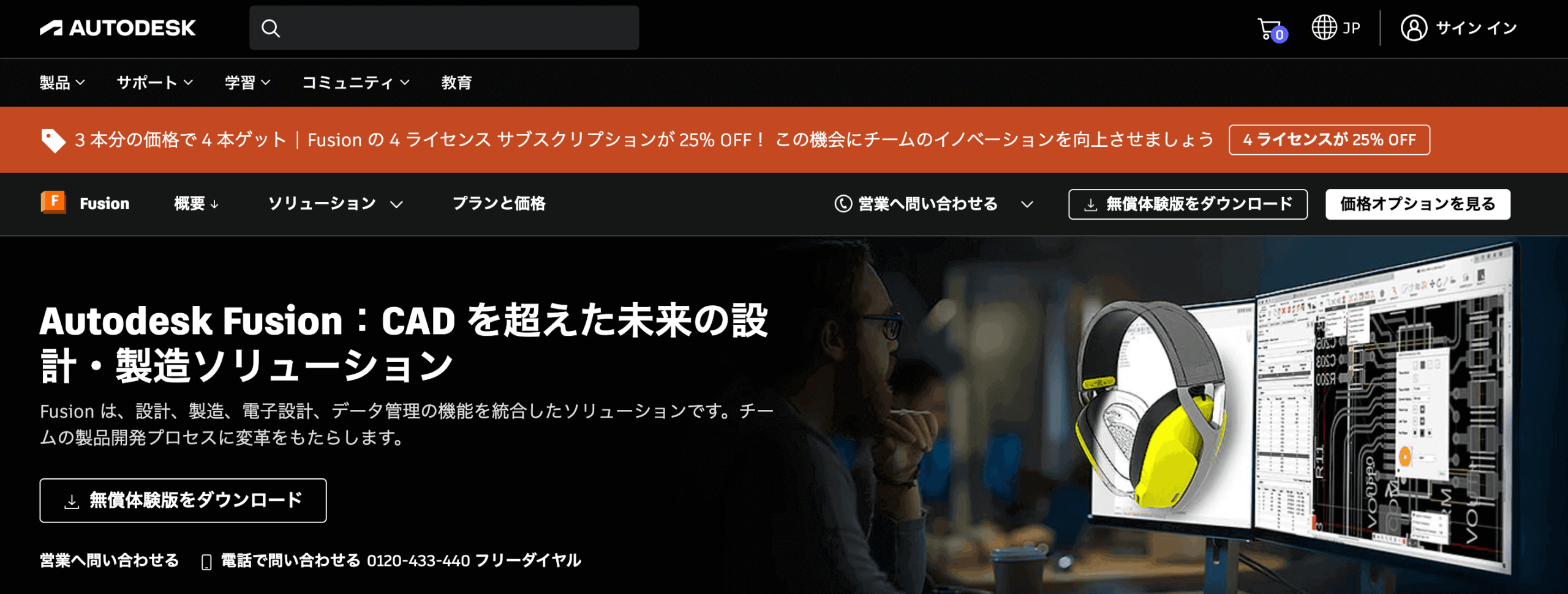 引用元:https://www.autodesk.com/jp/products/fusion-360/overview?term=1-YEAR&tab=subscription&plc=FSN