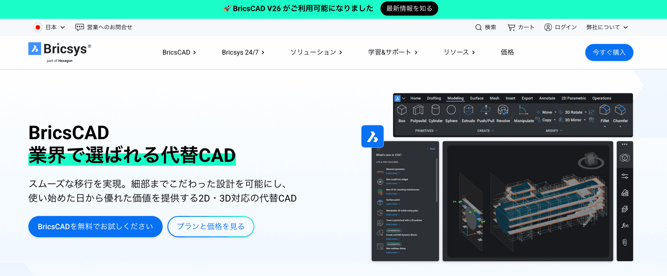 BricsCADは、ネイティブDWG形式に対応した2D/3D統合型CADプラットフォームであり、AIを活用した生産性向上ツールを備えています。