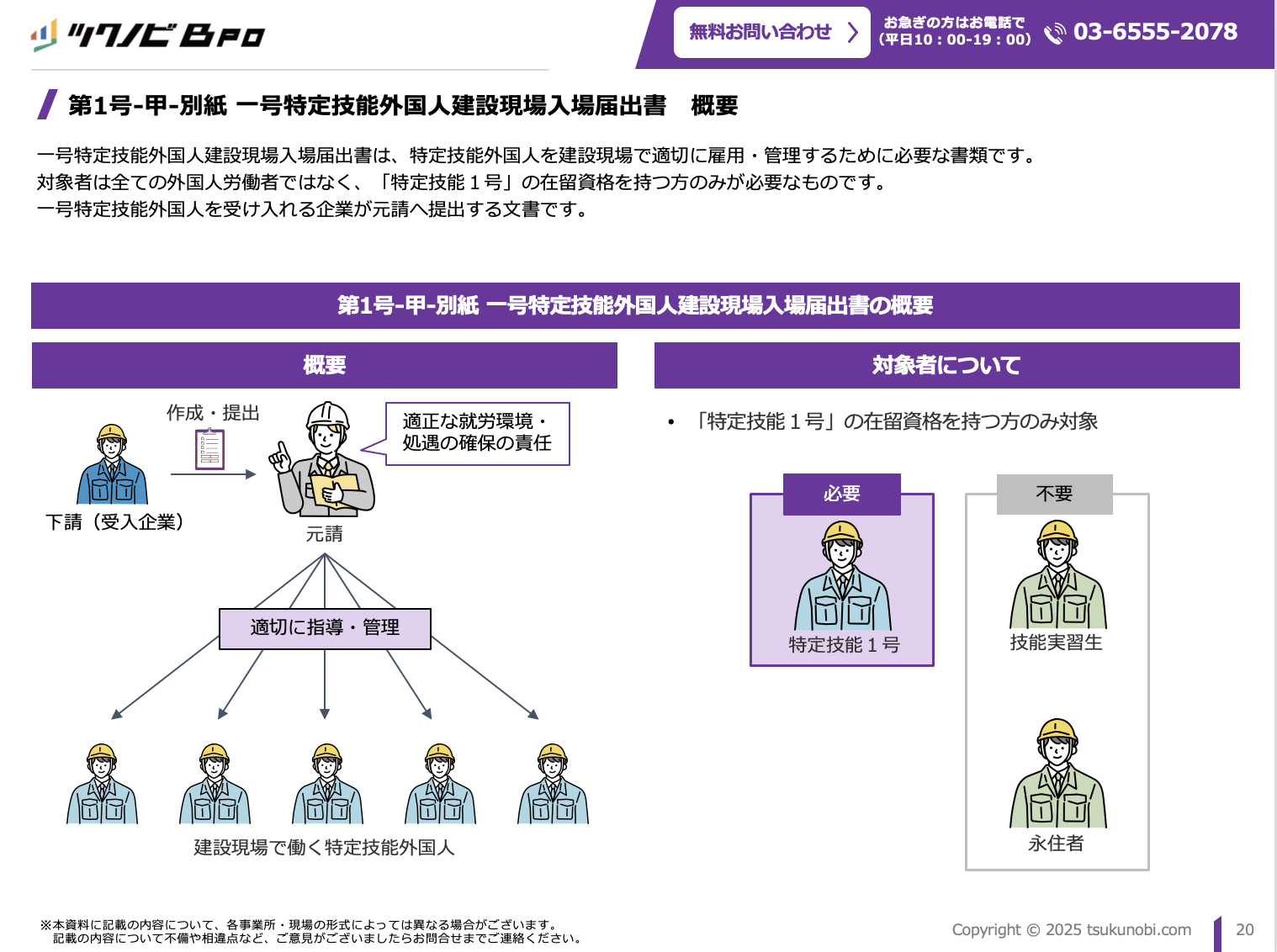 この書類は、元々は2020年東京オリンピック・パラリンピックによる建設工事の増加に対応するために誕生しました。オリンピック・パラリンピック後は、幅広い建設工事で外国人が現場に入る際に使用されています。